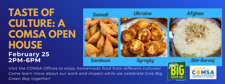 Visit the COMSA Offices on Wednesday, February 25th between 2:00-6:00PM to enjoy homemade food from different cultures!