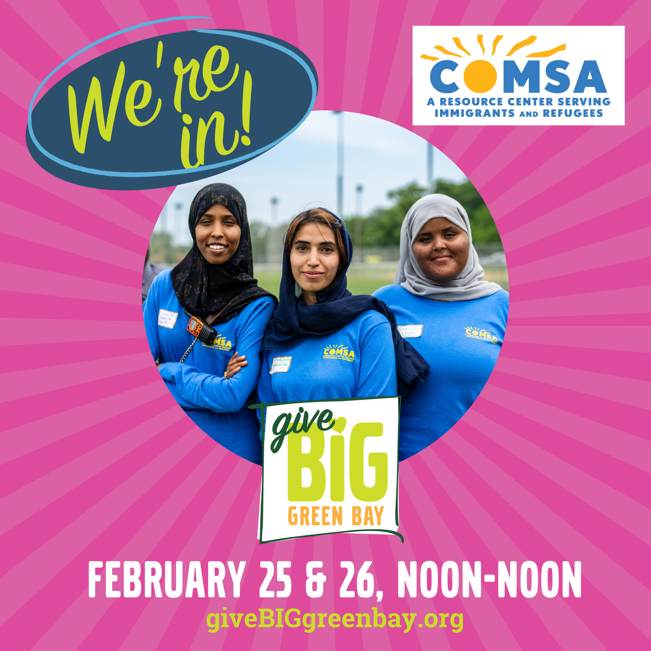 Join us on February 25-26 from Noon-Noon for this 24-hour giving event! All donations during this unique event will earn our organization a proportionate match provided by generous donors across Green Bay. Let your dollars go further and consider donating to COMSA. Visit our Give Big, Green Bay page to learn more: https://www.givebiggreenbay.org/organizations/comsa
